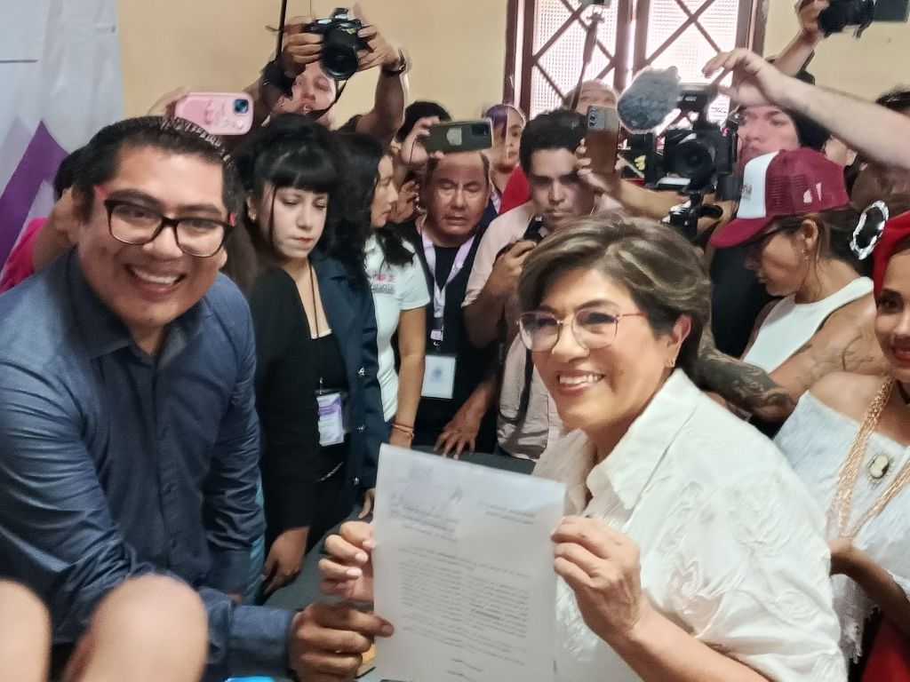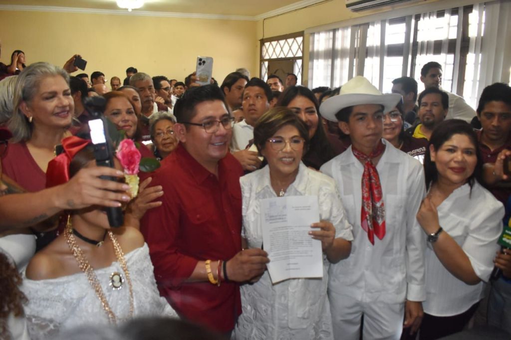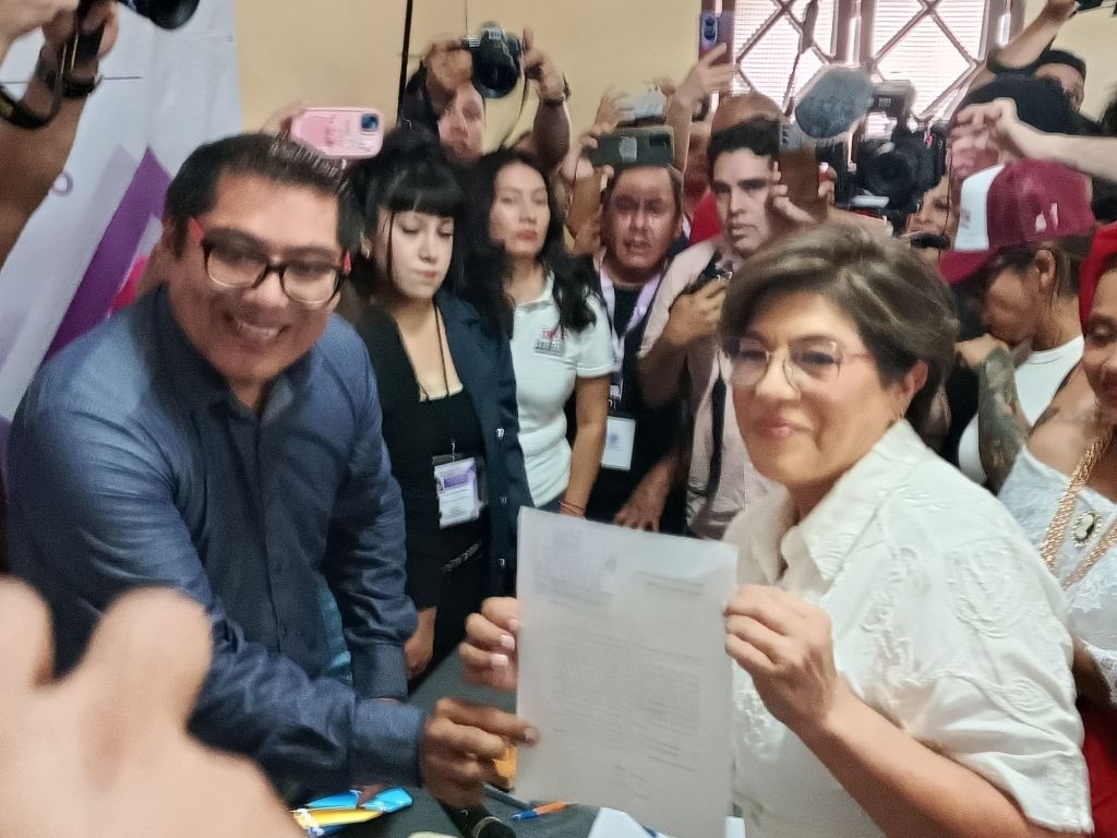 La inscripción se llevó a cabo en las oficinas del Organismo Público Local Electoral (OPLE), ubicadas en la calle Xicoténcatl, donde también estuvo presente el dirigente estatal de Morena, Esteban Ramírez Zepeta.