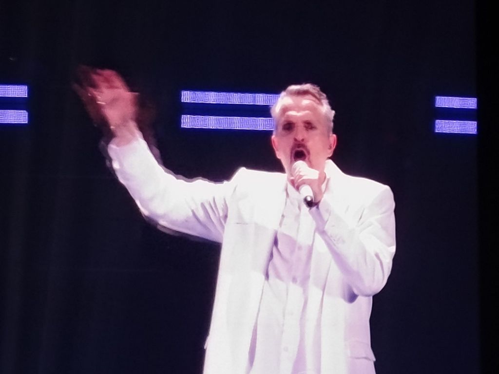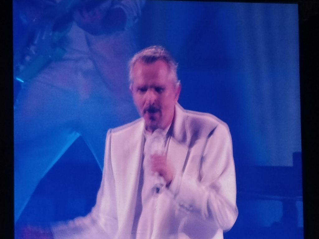 Fue poco antes de las 10 de la noche que se prendieron las luces del WTC y ver al cantante español Miguel Bose,el cual salió vestido de blanco,los aplausos y gritos se escucharon en el recinto.