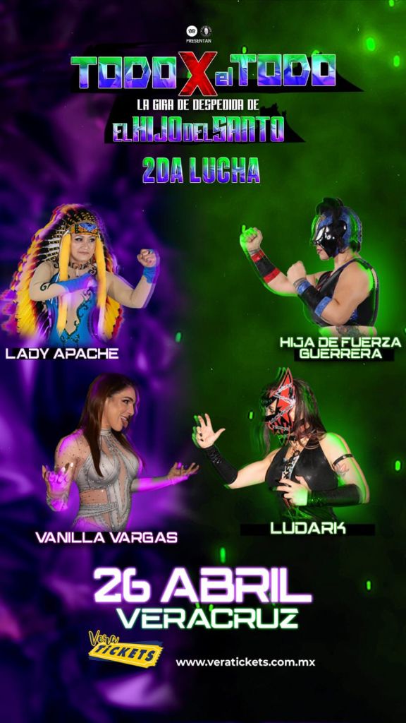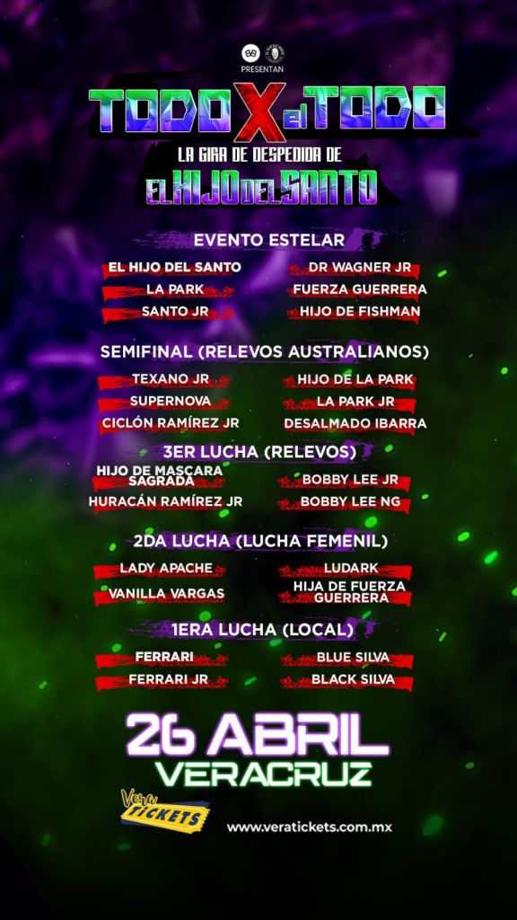 Recordemos que esta función “Todo x el Todo” de despedido de El Hijo del Santo será el sábado 26 de abril a partir de las 17:00 horas en el auditorio Benito Juárez, un recinto cómodo y con aire acondicionado, por lo que habrá mayor comodidad.