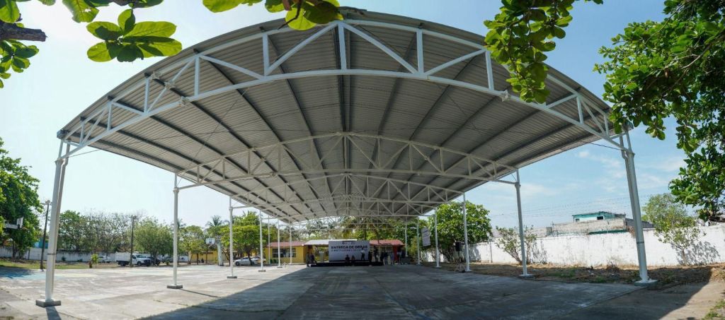 Requiriéndose también la instalación de más de 400 metros cuadrados de cubierta a base de lámina. Se construyeron 12 piezas de zapatas y se elaboraron más de 43 metros cuadrados de piso con concreto.