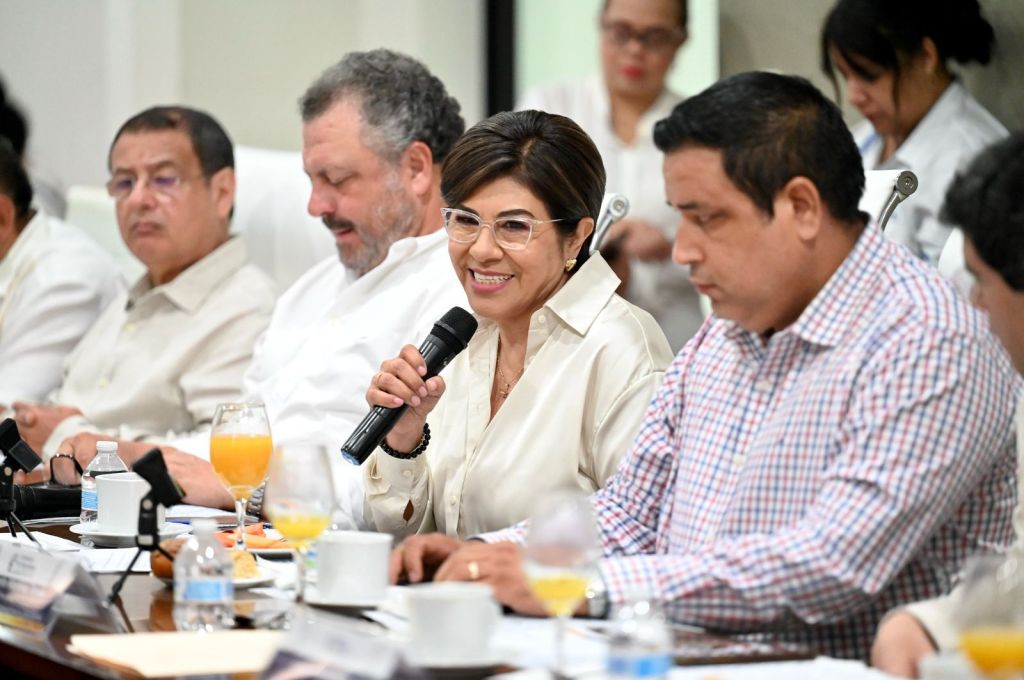 En este encuentro matutino fue recibida por Edi Alberto Martínez Tejeda, presidente del CCE, y acompañada por Belgio Amaya Rizo; Luis Antonio Exsome Zapata; y Gustavo Barrosa Barrón.