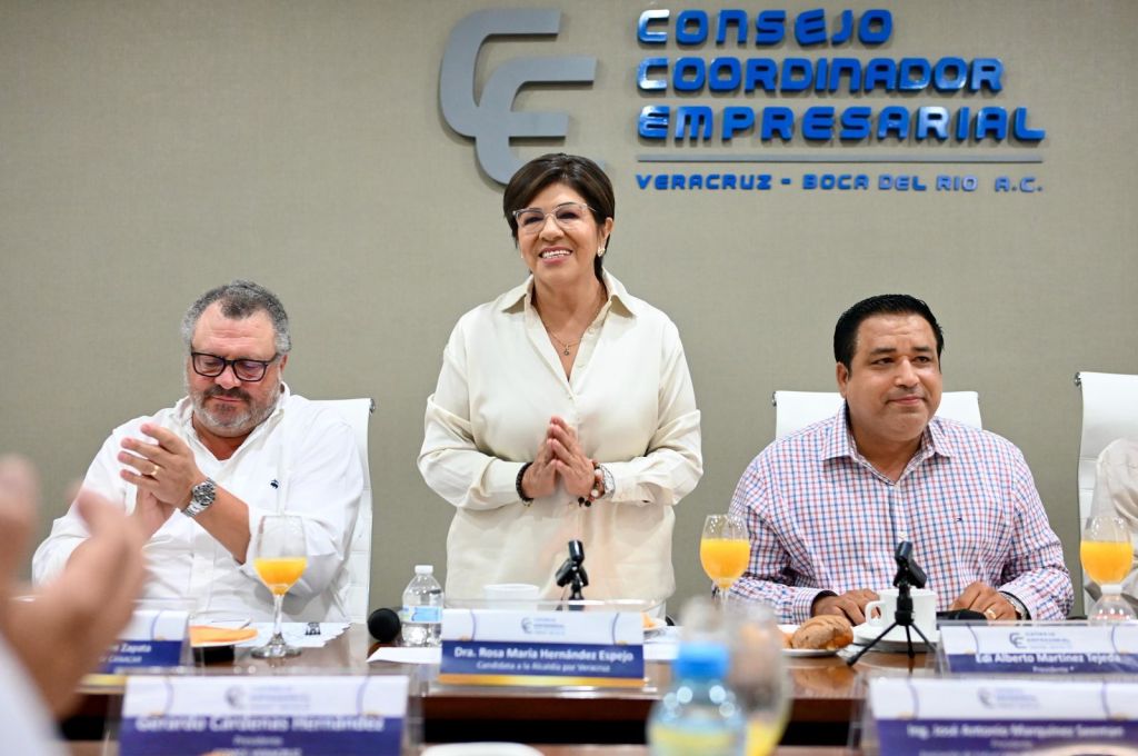 Hernández Espejo manifestó ante la organización empresarial que agrupan a más de 36 mil empresas veracruzanas: “Agradecida con esta mesa de hombres y mujeres que sin duda se han esforzado y siguen generando el desarrollo económico de nuestra hermosa, histórica y amada ciudad”.
