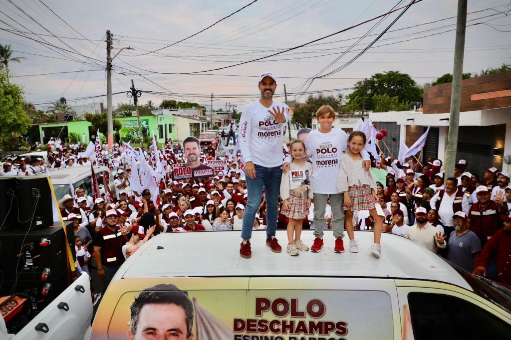 Alvarado, Ver.- Miles de ciudadanos y simpatizantes acompañaron a Polo Deschamps, candidato de Morena a la alcaldía de Alvarado, en su recorrido por calles y posterior concentración en la localidad de Antón Lizardo.