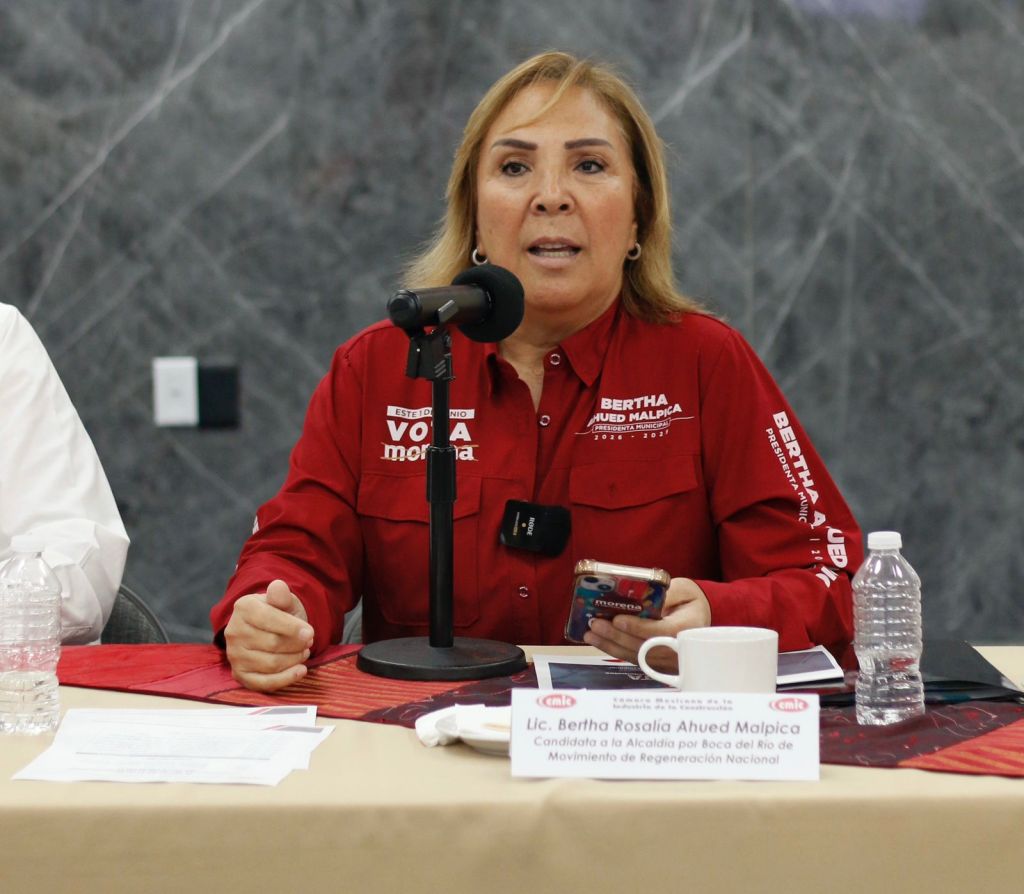 Con el objetivo de afianzar lazos con el sector de la construcción, la candidata por Morena-PVEM a la Presidencia Municipal de Boca del Río, Bertha Ahued Malpica, acudió a la Cámara Mexicana de la Industria de la Construcción (CMIC), que encabeza Alejandro Cagigas Obeso.