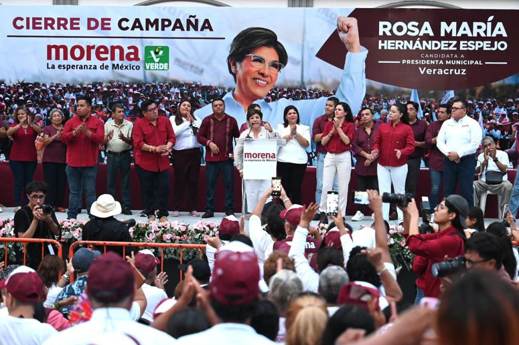 Veracruz, Ver. 28 de mayo de 2025.– Con el respaldo de más de diez mil personas reunidas en el Zócalo del puerto, Rosa María Hernández Espejo cerró su campaña a la alcaldía de Veracruz. Arropada por la presidenta nacional de Morena, Luisa María Alcalde Luján, y por el dirigente estatal Esteban Ramírez Zepeta, la candidata expresó su confianza en que este 1 de junio, el pueblo jarocho hará historia una vez más.