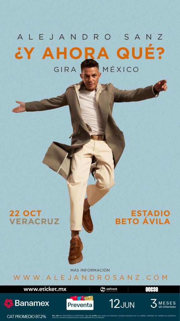 ¡Y es VERACRUZ!, una de las plazas en la que Alejandro Sanz presentará su nuevo tour ¿Y Ahora Qué? El miércoles 22 de octubre en el estadio de béisbol “Beto Ávila”.
