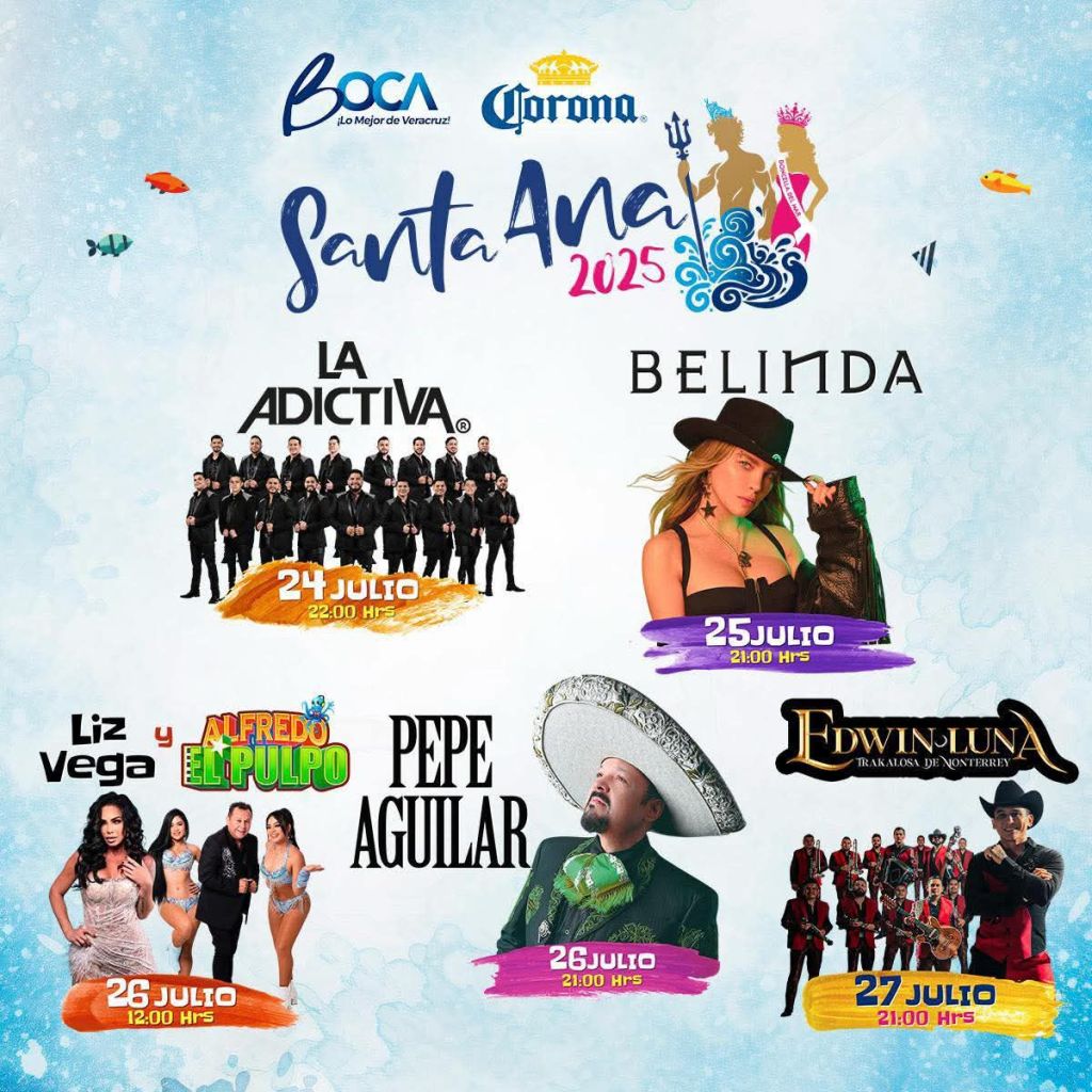 Boca del Río, Ver. – Con una cartelera artística de primer nivel, el Ayuntamiento de Boca del Río dio a conocer los conciertos y actividades que formarán parte de las Fiestas de Santa Ana 2024, que se celebrarán del 24 al 27 de julio en la Plaza Cívica del municipio.