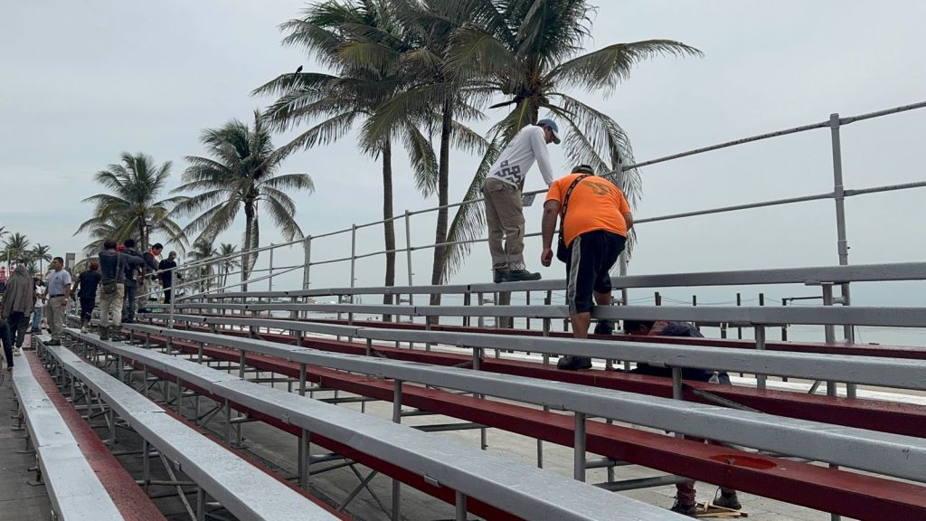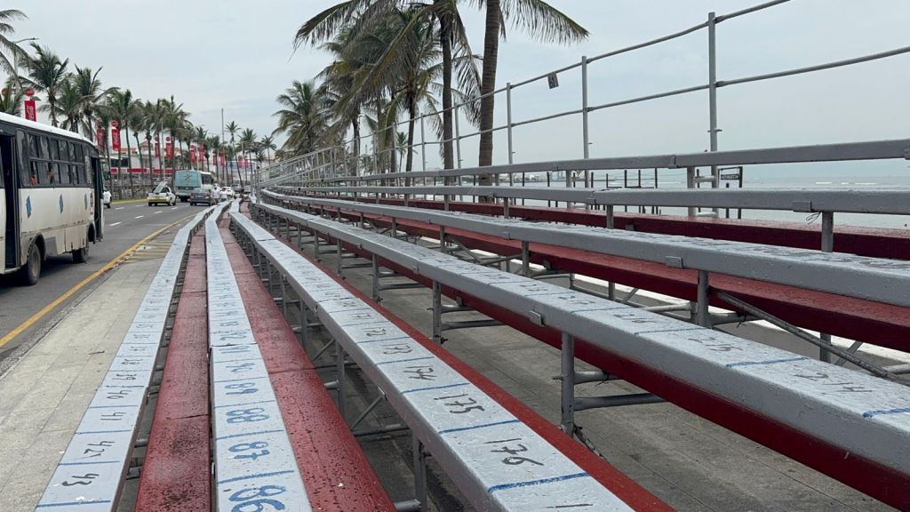 Las gradas, instaladas a lo largo de la vía costera, son fundamentales para mantener el orden entre los asistentes y evitar aglomeraciones, además de ofrecer una mejor experiencia visual del evento.