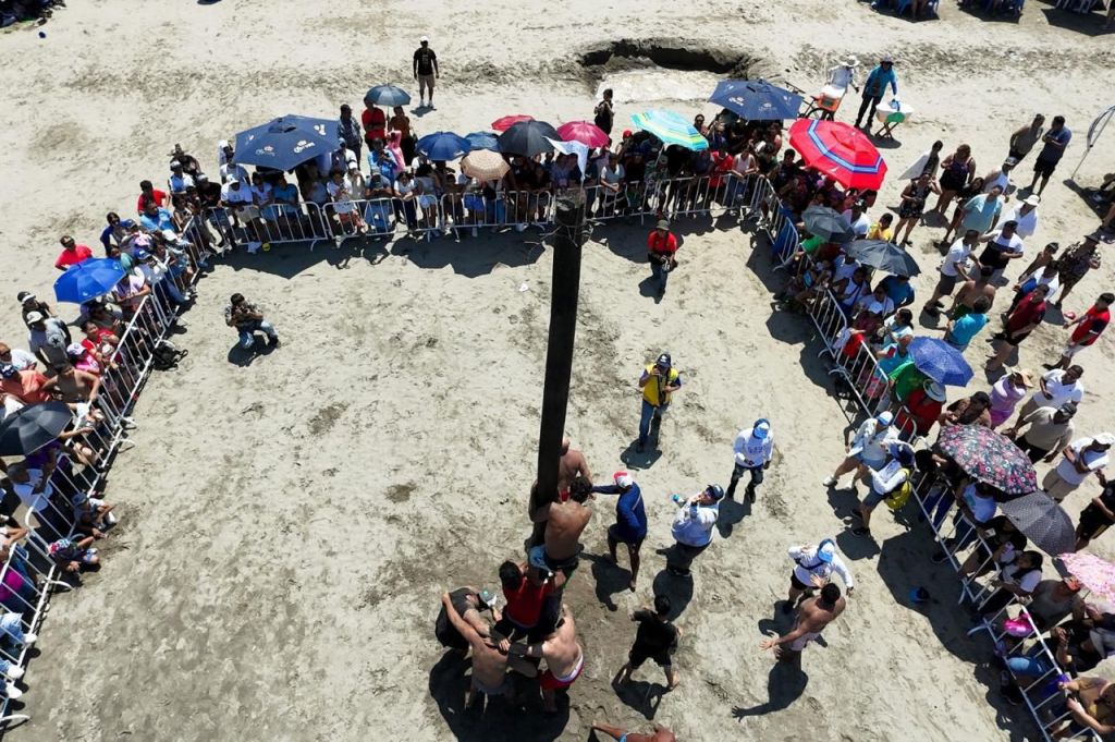 La emoción se trasladó al concurso del Palo Encebado, donde las porras no se dejaron esperar, locales y visitantes alentaron a los equipos a buscar la cima y obtener la bandera que los mostrará como los mejores, triunfando el equipo varonil “Pescadores” y en la rama femenil “Palapa Azul”.