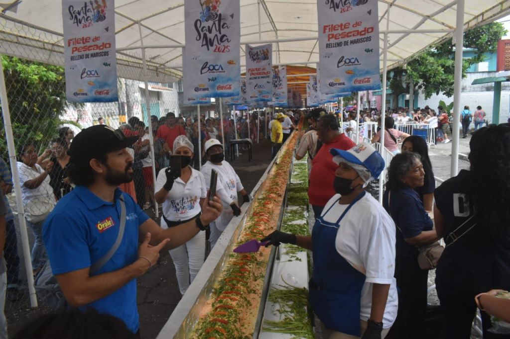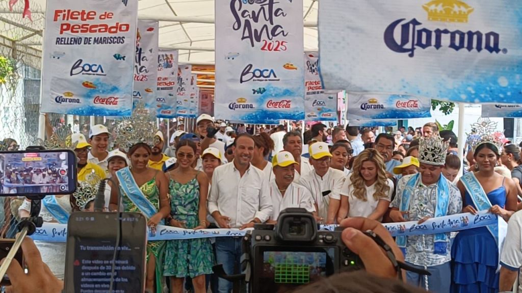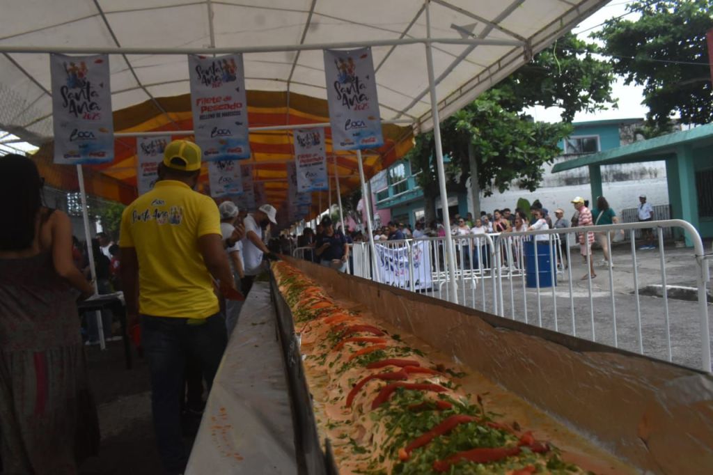 El alcalde boqueño Juan Manuel Unanue ,su esposa Melina Rivera de Unanue, ediles, directores del municipio ,la alcaldesa electa Maryjose Gamboa y la corte real de Santa Ana 2025 probaron con los miles de asistentes el suculento platillo que realizaron los restauranteros de la zona de Boca del Río.
