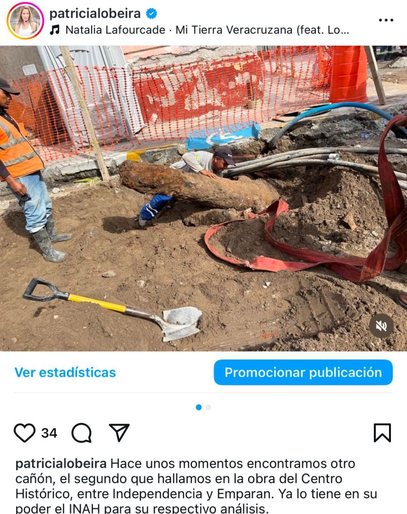 “Hace unos momentos encontramos otro cañón, el segundo que hallamos en la obra del centro histórico de Veracruz, entre Independencia y Emparan. Ya lo tiene en su poder el INAH para su respectivo análisis”.