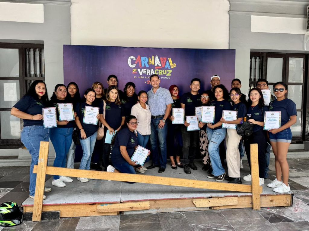 Veracruz, Veracruz. Agosto 2025.-* En representación de la alcaldesa de Veracruz, Paty Lobeira Rodríguez, el presidente del Comité del Carnaval, Luis Valdés “Maremoto”, reconoció la participación de jóvenes voluntarios que apoyaron la celebración veracruzanas más alegre del mundo.