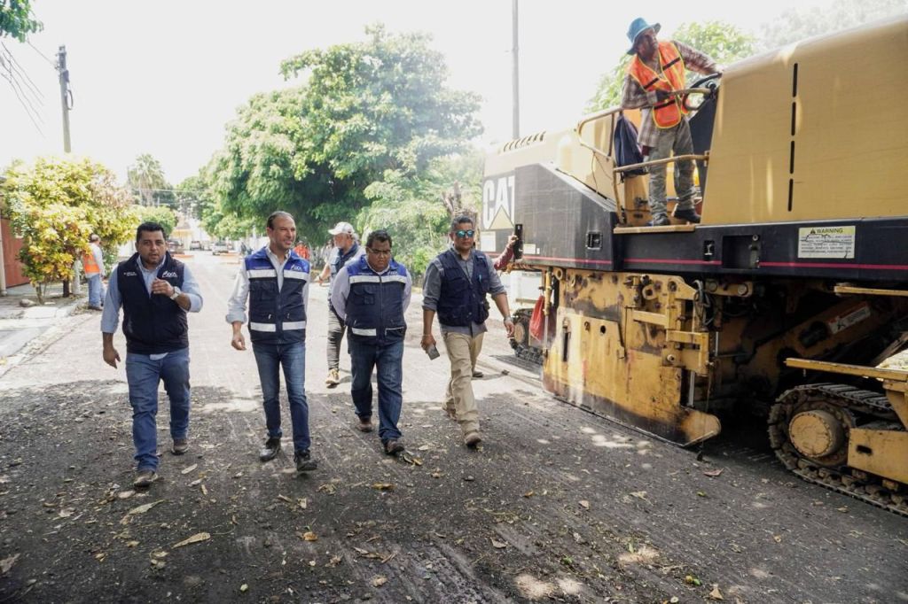**Este martes supervisó la rehabilitación de la pavimentación en concreto asfáltico de la calle Moisés Sáenz en la Ejido Primero de Mayo Norte