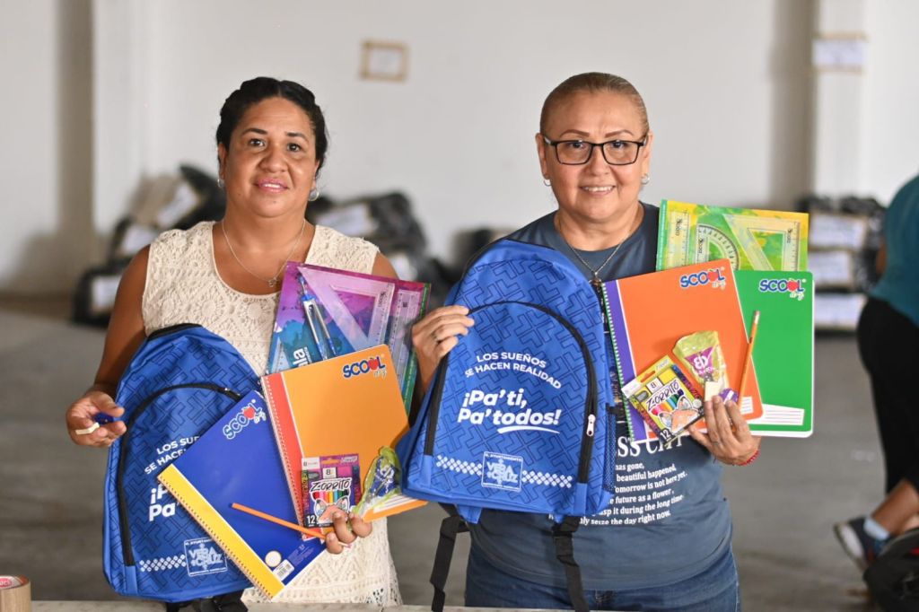 Los kits incluyen mochila, libretas, juego de geometría, caja de colores, lápices, tijeras, goma y sacapuntas. La alcaldesa explicó que en algunos años también se hizo entrega de tenis escolares, aunque este año no se incluyeron.