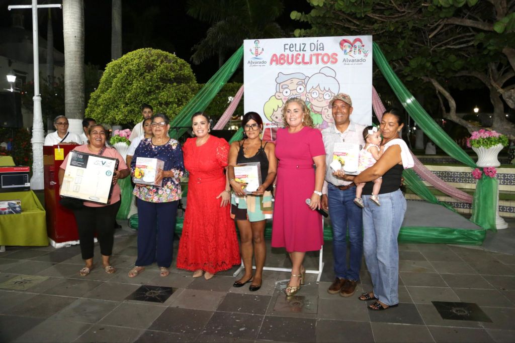 Alvarado, Ver.- En el zócalo de esta ciudad la alcaldesa Lizzette Álvarez Vera y la presidenta del DIF Yleana del Rosario Álvarez Vera celebraron a los abuelitos en su día en un homenaje lleno de regalos, alegría y la participación de artistas locales. La presidenta municipal felicitó el trabajo de la titular del DIF y el apoyo al adulto mayor durante toda su gestión al frente de la institución.