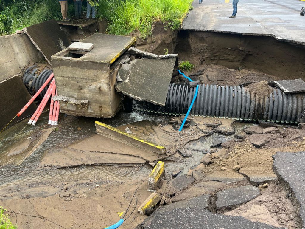 El socavón ocupa más de medio carril dirección norte a sur y tiene una profundidad de más de 2 metros, dio a conocer el director de PC, Daniel Romero.