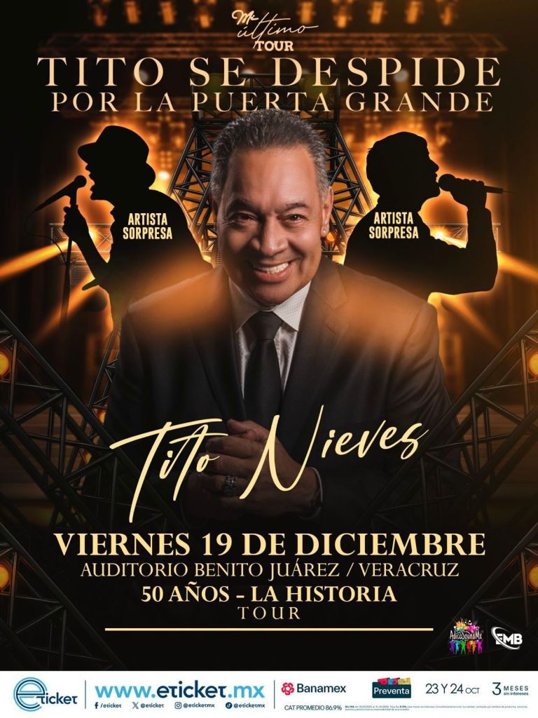 Veracruz, Ver.- Los amantes de la salsa tienen una cita obligada este 19 de diciembre, cuando Tito Nieves, conocido como “El Pavarotti de la Salsa”, se presente por última vez en Veracruz.