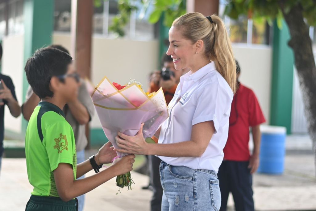 Durante su intervención, la alcaldesa destacó que esta acción forma parte del compromiso de su administración con la educación, apoyo que en sus primeros años se centró en escuelas primarias y jardines de niños, y que ahora se enfoca en las secundarias del municipio.