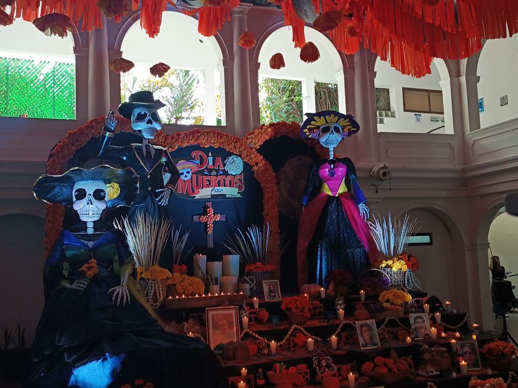 Además, al exterior del Palacio Municipal se colocaron altares elaborados por alumnos de diversas instituciones educativas, quienes contribuyeron con creatividad y color a esta muestra de tradición mexicana.