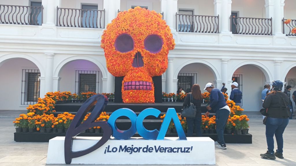 “El altar fue realizado por colaboradores del ayuntamiento, y al exterior del Palacio se instaló una calavera gigante que ha llamado la atención de visitantes y familias boqueñas”, comentó el presidente municipal.