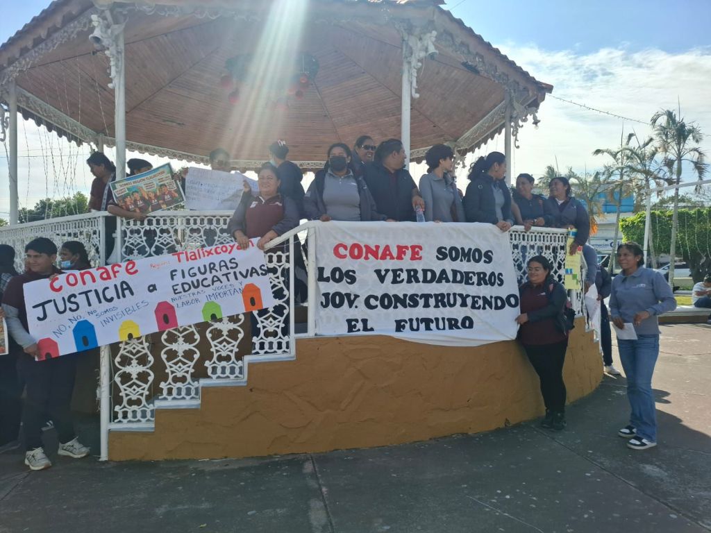 Tlalixcoyan, Ver.- Docentes de al menos cinco municipios de la entidad veracruzana se reunieron a las afueras del Ayuntamiento de Tlalixcoyan, para sumarse al paro nacional de maestros contra el Consejo Nacional del Fomento a la Educación (CONAFE), a quienes hacieron un pliego petitorio para que Gobierno Federal valorice por su labor.