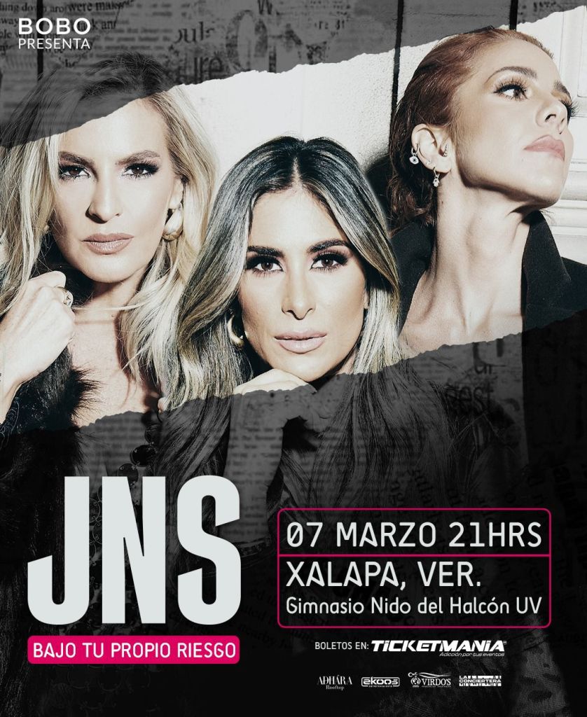 La noticia que todos esperaban, las JNS vuelven a Xalapa este 2026 y anuncian su gira BAJO TU PROPIO RIESGO que tocará tierra xalapeña el día sábado 7 de marzo en punto de las 9 de la noche en el mejor lugar para la cita con sus fans en el gimnasio Nido del Halcón UV.