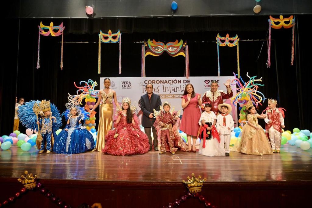 Veracruz, Ver., 05 de febrero de 2026.- En un ambiente de mucha alegría y colorido, se realizó la coronación de “Romina I” y “Saúl I”, del CAIC Sixtita Bello, como soberanos del Carnavalito “Rey de Reyes” en donde participaron de manera entusiasta, niñas y niños de los 14 Centros de Asistencia Infantil Comunitarios (CAIC) del DIF Municipal de Veracruz.
