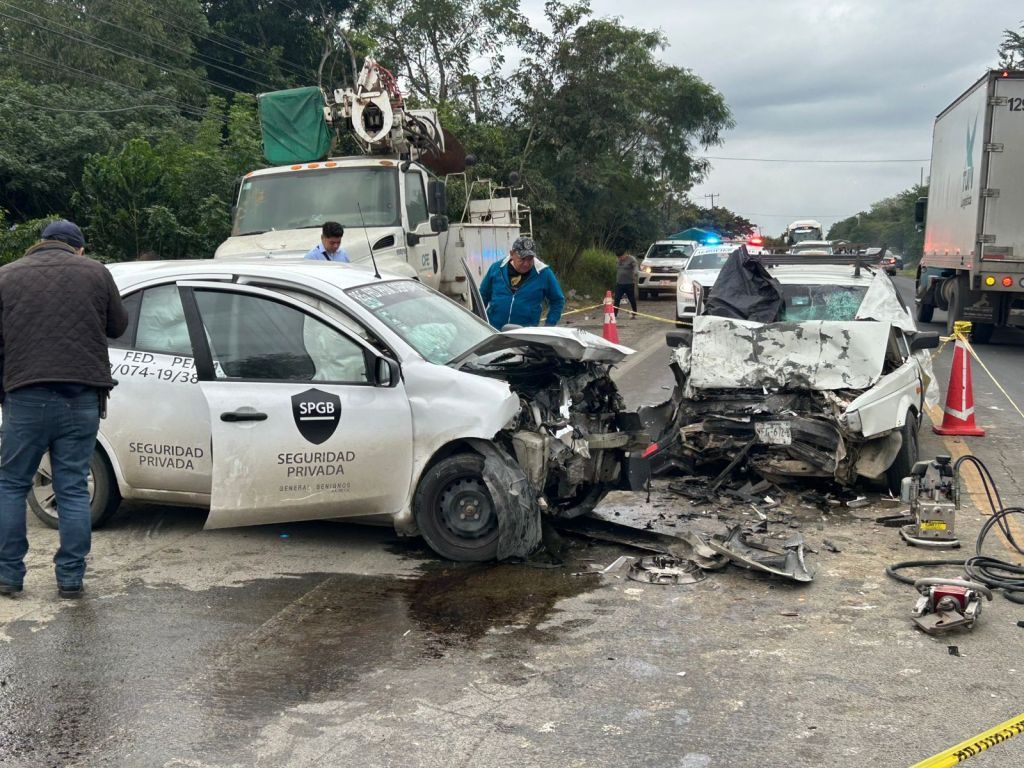 Los peritos informaron que la unidad de una empresa de seguridad privada conducida por un empleado, rebasó en sentido contrario e impacto de frente a un automóvil Tsuru.