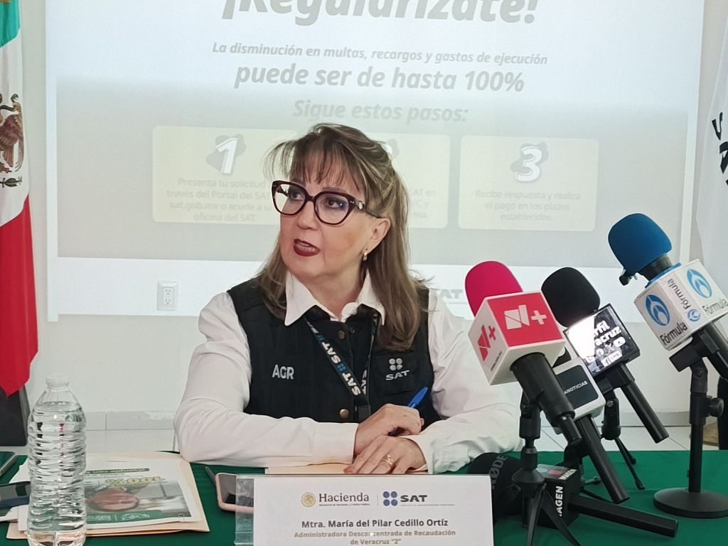En conferencia de prensa, la Mtra. María del Pilar Cedillo Ortiz, administradora desconcentrada de Recaudación de Veracruz “2”, informó que este beneficio está dirigido tanto a personas físicas como morales, incluso aquellas con ingresos superiores a los 300 millones de pesos, y aplica para adeudos correspondientes al ejercicio fiscal 2024 y anteriores.