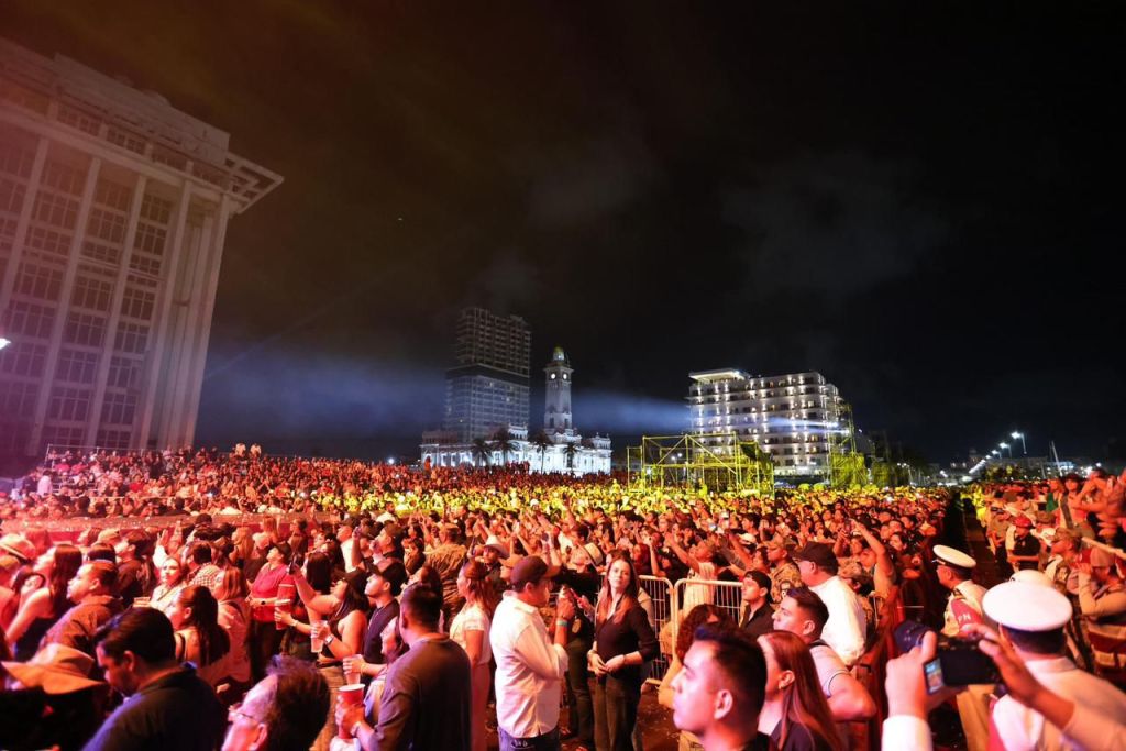 Veracruz, Ver.- La noche más multitudinaria del Carnaval se vivió con la presentación estelar de la Banda MS, que logró congregar a cerca de 120 mil asistentes en la Macroplaza del Malecón, consolidando uno de los eventos más impactantes de la llamada “Fiesta de Todos”.