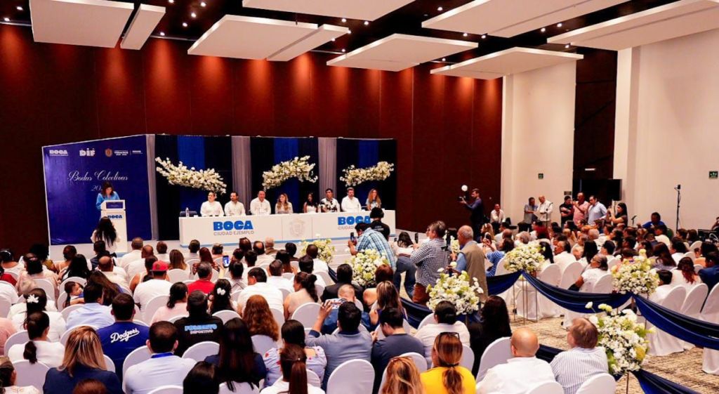 La alcaldesa de Boca del Río, Maryjose Gamboa Torales, y la presidenta del DIF de Boca del Río , María Paula Hakim Gamboa, encabezaron la ceremonia de Bodas Colectivas 2026, en la que 97 parejas formalizaron su unión civil, gracias al trabajo coordinado entre el Sistema DIF Municipal, el Registro Civil y el Ayuntamiento boqueño.