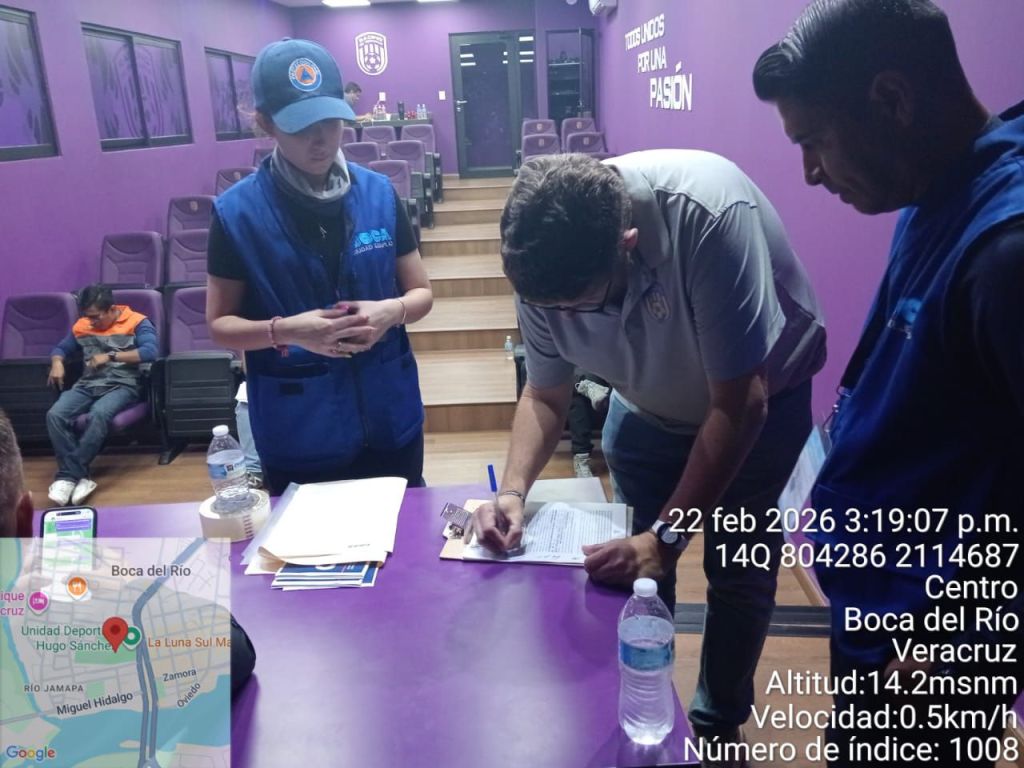 Personal de Protección Civil municipal notificó a la directiva del Club de Futbol de la liga Premier “Racing”, la clausura temporal y parcial de sus partidos que realiza en la Unidad Deportiva Hugo Sánchez.