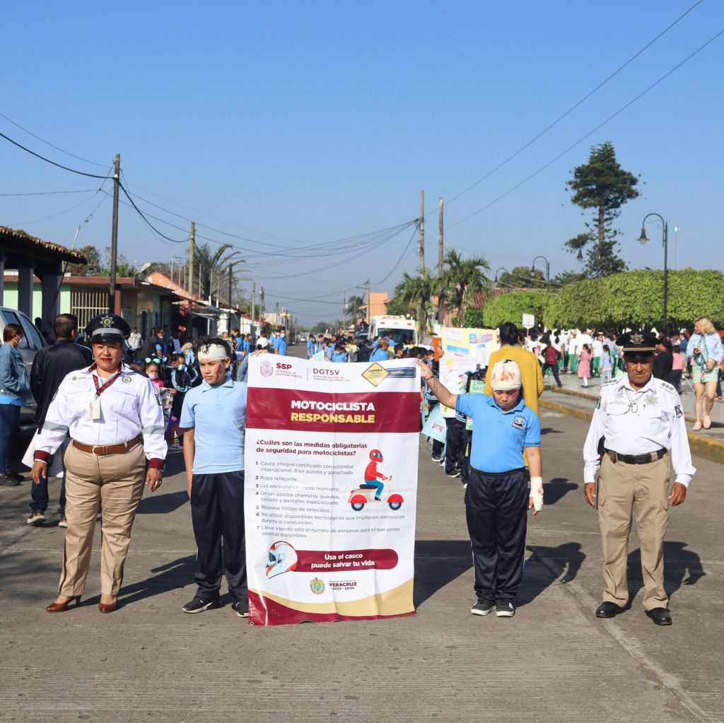 *Saltabarranca, Ver.–* Con el respaldo y acompañamiento del presidente municipal, Elvis Laureani Román, se llevó a cabo un desfile de concientización vial en las principales calles del municipio, en coordinación con la delegación de Tránsito del Estado.