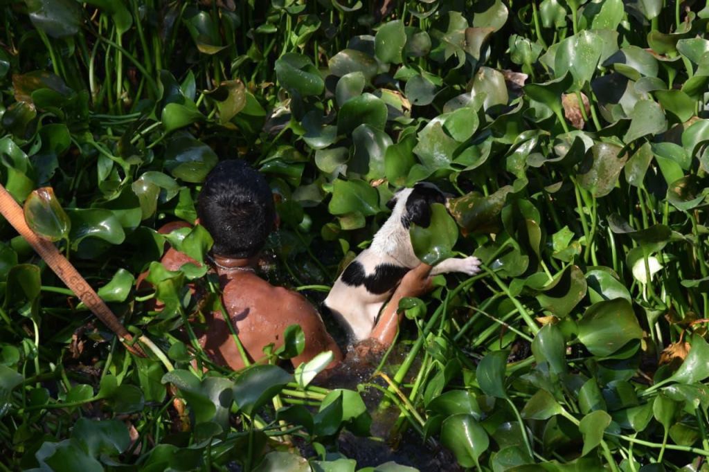 Medellín de Bravo, Ver.— La Dirección de Protección Civil de Medellín de Bravo, a cargo de Antonio Rosas Delon, realizó el rescate de una cachorrita que se encontraba atrapada entre el lirio dentro del Arroyo Moreno, durante la mañana de este día.
