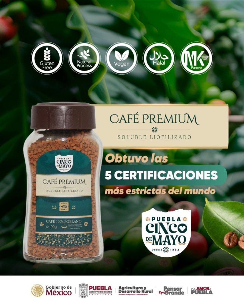 Con el surgimiento de la marca poblana de café soluble “Cinco de Mayo”, se busca fortalecer el desarrollo económico de la cafeticultura mediante acciones que impulsan el valor agregado y abren nuevas oportunidades para las y los cafeticultores de la entidad, de la mano de la presidenta Claudia Sheinbaum Pardo.