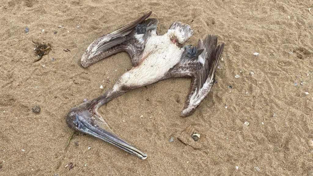 El primer hallazgo se registró en la franja de playa de la colonia Escolleras, a la altura de la calle Carolino Anaya, donde fue localizado un pelícano muerto. El cuerpo del ave se encontraba en un punto donde, en días recientes, habitantes han documentado la presencia de chapopote y residuos de hidrocarburo sobre la arena.